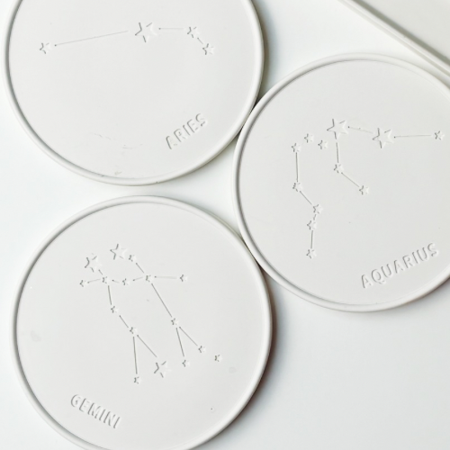 Onderzetters van de verschillende sterrenbeelden: Aries, Taurus, Gemini, Cancer, Leo, Virgin, Libra, Scorpio, Sagittarius, Capricorn, Aquarius, Pisces